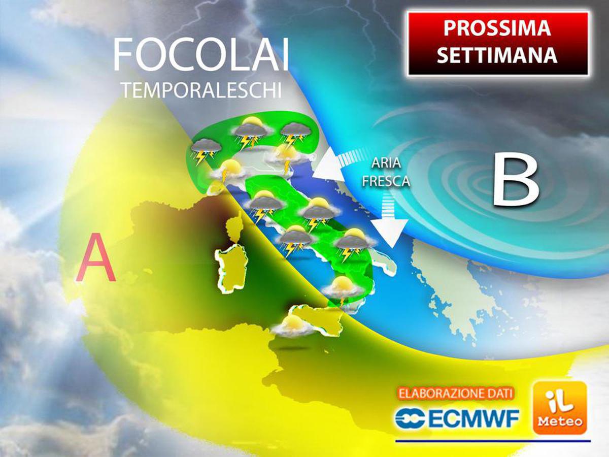 La prossima settimana si aprirà subito all’insegna del maltempo a causa dell’ingresso in quota di correnti fresche e instabili che dall’Europa nord-orientale raggiungeranno velocemente il bacino del Mediterraneo, dando il via ad una fase molto instabile. Lunedì 7 ci aspettiamo, di conseguenza, intensi acquazzoni già dal mattino, soprattutto sul Triveneto, sulle Alpi e sulle Prealpi in genere, poi in estensione al resto del Nord fino a coinvolgere anche le regioni del Centro.