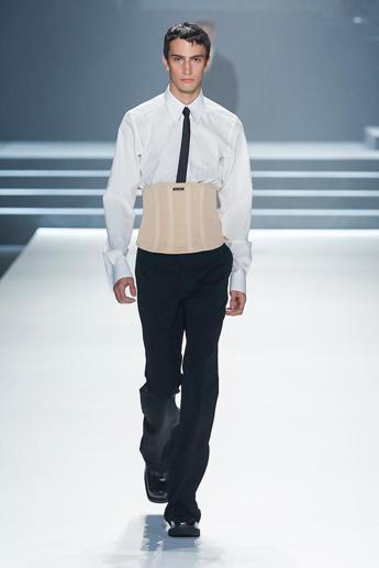 (Adnkronos) – Ottantuno uscite, tra rigore ed eleganza, che incarnano l’essenza di Dolce&Gabbana. Per il prossimo autunno-inverno 2023 il brand capitanato da Domenico Dolce e Stefano Gabbana immagina per il suo uomo un guardaroba pulito e sartoriale, dove il nero è il protagonista assoluto. Un ritorno al Dna della maison, che in passerella si traduce in lunghi e ampi cappotti che rivelano l’underwear, crop top e military vest, preziose maglie ricamate e abiti tailored intervallati da sovrastrutture di corsetti e fusciacche che segnano il punto vita, una riedizione della collezione autunno inverno 1999/00 con micro-maglie e pantaloni a doppia cintura. Il nero, sinonimo di riservatezza, eleganza, rigore e seduzione, viene declinato sui diversi materiali, ora illuminato dai cristalli ricamati tono su tono, che ricordano la pietra vulcanica bagnata dell’Etna e di Stromboli, ora stagliandosi su abiti e completi total black ricoperti di paillettes. E’ questa l’essenza unica di Dolce&Gabbana, che si rivela anche nei tagli sartoriali e nei volumi, senza mai abbandonare la sensualità. Le proporzioni sono innovative, la drapperia, le sete italiane e l’artigianato simboleggiano il richiamo al fatto a mano e ai valori del patrimonio culturale italiano. Nel front row gli ospiti approvano entusiasti. Tra loro Machine Gun Kelly, Blanco, Tony Effe, Twins Hadban, Abdulla Al Abdulla, Mariano Di Vaio, Palayo Diaz. (di Federica Mochi) —modawebinfo@adnkronos.com (Web Info)