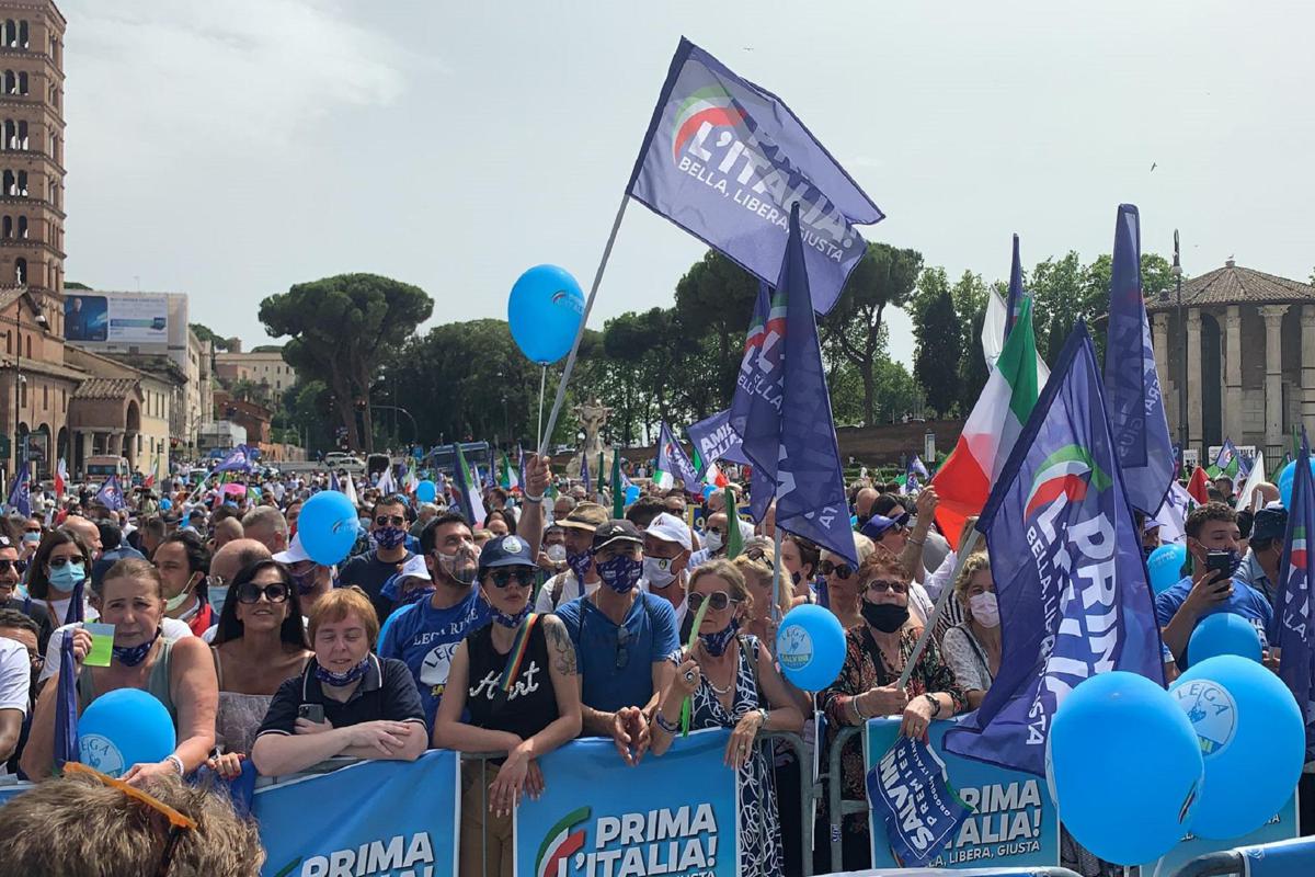 “Questa è la prima grande, pacifica, mascherinata, manifestazione dopo un anno di paura”, ha detto Salvini dal palco aprendo la manifestazione. “Noi vogliamo – spiega – mettere l’amore del paese prima dell’interesse del partito”, aggiunge il leader della Lega, continuando: “L’Italia non può essere colonia o campo profughi”. Poi avverte: “Diamo subito la parola ai lavoratori”, invitando sul palco dipendenti di Ikea in sciopero.