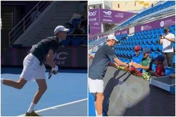 Jannik Sinner è a Doha. Oggi, sabato 14 febbraio, il tennista azzurro è sceso in campo per testare il cemento qatariota, nel suo primo allenamento in vista dell'Atp 500 al via lunedì 16 febbraio. Tanti sorrisi in campo per Sinner, che guidato dall'allenatore Simone Vagnozzi e dal suo team ha eseguito un breve riscaldamento, con scatti e ed esercizi per allenare i riflessi, prima di impugnare la racchetta. Il numero due del mondo ha allenato il servizio, con il miglioramento della prima che è obiettivo dichiarato dell'altoatesino nella nuova stagione, e ha sfoggiato dritti e rovesci, salendo a rete per continuare ad allenare le variazioni. Al termine della seduta, immancabili gli autografi con alcuni piccoli tifosi. Sinner arriva all'Atp di Doha, a cui non ha partecipato lo scorso anno a causa della sospensione per il caso Clostebol, dopo aver perso le semifinale degli Australian Open 2026 contro Novak Djokovic, battuto poi in finale da Carlos Alcaraz, che grazie al trionfo di Melbourne è scappato via nel ranking, staccando proprio Sinner al secondo posto.