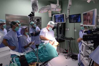 (Adnkronos) – La realtà aumentata entra in sala operatoria al Piccole Figlie Hospital di Parma, dove nei giorni scorsi è stato eseguito "con successo" un intervento mininvasivo di chirurgia protesica alla spina dorsale utilizzando una tecnica che "non era mai stata adottata prima in Italia per un intervento simile", informano oggi dalla struttura gruppo Lifenet Healthcare. Protagonista dell'operazione l'équipe di Ortopedia della schiena guidata dai chirurghi Claudio Ferlinghetti e Pier Filippo Sbaffi. A beneficiare dell'intervento "un 73enne affetto da spondilolistesi, una patologia che si sviluppa tramite il lento, ma progressivo scivolamento di una vertebra su quella sottostante – spiega una nota – con conseguente stenosi del canale spinale, ovvero un restringimento dello spazio che contiene il midollo spinale e le radici nervose. Una condizione che incideva negativamente sulla qualità di vita" del paziente, "limitando la sua mobilità a causa del dolore lombare e agli arti inferiori". La colonna vertebrale dell'uomo, si legge, "è stata completamente ricostruita digitalmente tramite la piattaforma NextAr, sviluppata dall'azienda svizzera Medacta International, e proiettata sulla lente di un particolare paio di occhiali (smart glasses) indossato dal chirurgo durante l'operazione. In questo modo l'immagine elaborata con il computer viene sovrapposta a quella reale, permettendo a chi opera di avere sotto controllo preziose informazioni in tempo reale, che consentono di eseguire con elevata accuratezza regolazioni personalizzate sull'autonomia del paziente. Merito di una tecnologia a raggi infrarossi che traccia lo strumento chirurgico nelle mani del medico, in modo da guidarlo durante l'operazione sulla base della ricostruzione virtuale della colonna vertebrale che è stata caricata in precedenza sulla piattaforma chirurgica". "L'intervento, pur essendo molto delicato, si è svolto senza complicazioni – afferma Ferlinghetti – Due giorni prima lo abbiamo pianificato passo dopo passo sul portale web di NextAr, inserendo nel sistema i dati per la ricostruzione della spina dorsale del paziente e personalizzando l'operazione sulle sue esigenze. In questo modo, il ricorso alla realtà aumentata ci ha aiutato a valutare la stabilità della colonna vertebrale ancora prima che l'intervento fosse ultimato". Per Sbaffi "questo intervento segna un vero cambio di passo nella chirurgia protesica. Tramite la realtà aumentata, infatti, è possibile localizzare in anticipo e con grande precisione il punto esatto in cui intervenire, permettendoci di posizionare protesi o viti con molta più accuratezza. Tutto questo si traduce in una minore invasività e una riduzione del rischio di errore e complicanze, permettendo al paziente il ritorno a una vita attiva in tempi più rapidi". "L'intervento, eseguito per la prima volta in Italia impiantando viti corticali divergenti con l'ausilio della realtà aumentata – illustrano dall'ospedale – ha previsto artrodesi delle vertebre L4-L5 e successiva decompressione chirurgica: una procedura che permette di unire chirurgicamente le vertebre presenti nel tratto lombare della colonna vertebrale per stabilizzarla". "Grazie alla realtà aumentata, questa tecnica può essere svolta in maniera meno invasiva" con "diversi vantaggi – elencano gli esperti – tra cui una ridotta incisione cutanea; un minor scollamento dei muscoli, con conseguente salvaguardia della loro integrità e funzionalità (il cosiddetto risparmio muscolare); un importante calo di perdita ematica; tempi di degenza e convalescenza nettamente più rapidi e qualitativamente migliori; nessuna prescrizione per busti o stampelle in post-operazione; rapida mobilitazione del paziente, anche il giorno stesso dell'intervento". Si tratta inoltre di "una metodologia consigliata anche per persone anziane, pur se affette da osteoporosi", perché con la realtà aumentata "è più facile intervenire sulle vertebre in maniera precisa e mirata, riducendo il rischio che l'osso si danneggi". "Il nostro obiettivo è far diventare il Piccole Figlie Hospital un centro d'eccellenza e un punto di riferimento in materia di chirurgia protesica in Emilia Romagna e non solo – dichiara il neo amministratore delegato Paolo Migliavacca – Siamo molto orgogliosi di questo risultato. L'équipe medica e le strumentazioni della nostra struttura si sono confermate ancora una volta una tra le migliori e le più aggiornate in Italia". —salutewebinfo@adnkronos.com (Web Info)