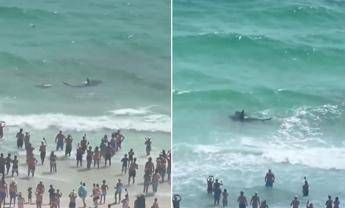 (Adnkronos) – Duello tra lo squalo e la razza in riva al mare, con i bagnanti spettatori dello scontro. I video diffusi sui social mostrano il confronto ravvicinato tra uno squalo e una razza davanti alla spiaggia di Panama City, in Florida. Decine di persone si avvicinano, alcune entrano anche in acqua per assistere da vicino allo scontro: "Oddio, lo sta mangiando?'', la domanda che una persona si pone davanti allo 'spettacolo'. Non è chiaro che tipo di squalo sia coinvolto nel duello. Nelle acque della Florida in particolare, evidenzia la National Oceanic and Atmospheric Administration, non sono insoliti confronti ravvicinati tra squali e razze. —internazionale/esteriwebinfo@adnkronos.com (Web Info)