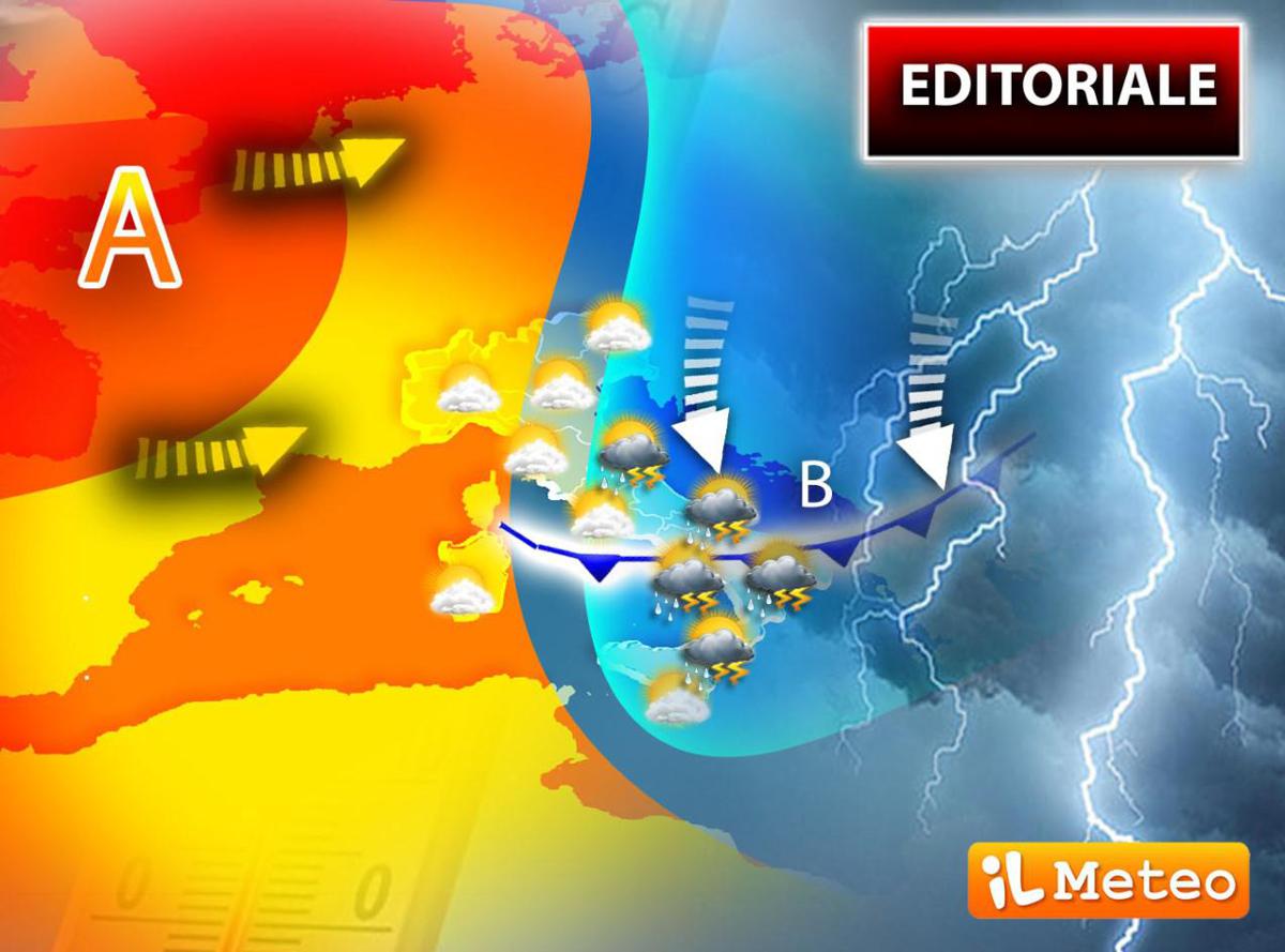 Ed ecco che l’altalena impazzita provoca, nello scontro aria polare-aria sahariana, violenti fenomeni temporaleschi con colpi di vento, grandine e danni.