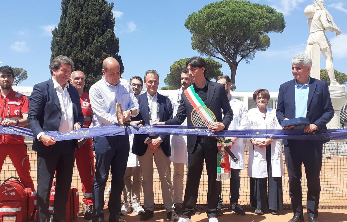 Veronica Maya, madrina di Tennis & Friends, insieme alle istituzioni e alle autorità presenti, ha dato il via al taglio del nastro; presenti Nicola Zingaretti, presidente della Regione Lazio, Alessandro Onorato, assessore ai Grandi Eventi, Sport e Turismo di Roma Capitale, Ignazio Schintu, direttore delle operazioni, emergenze e soccorsi della Croce Rossa Italiana, Angelo Binaghi, presidente della Federazione Italiana Tennis, Vito Cozzoli, presidente e amministratore delegato di Salute e Sport S.p.A., Giovanni Malagò, presidente del Coni. Nicola Pietrangeli, presidente onorario della manifestazione e ambasciatore del mondo del tennis, e il professore Giorgio Meneschincheri, presidente di Friends For Health Onlus.