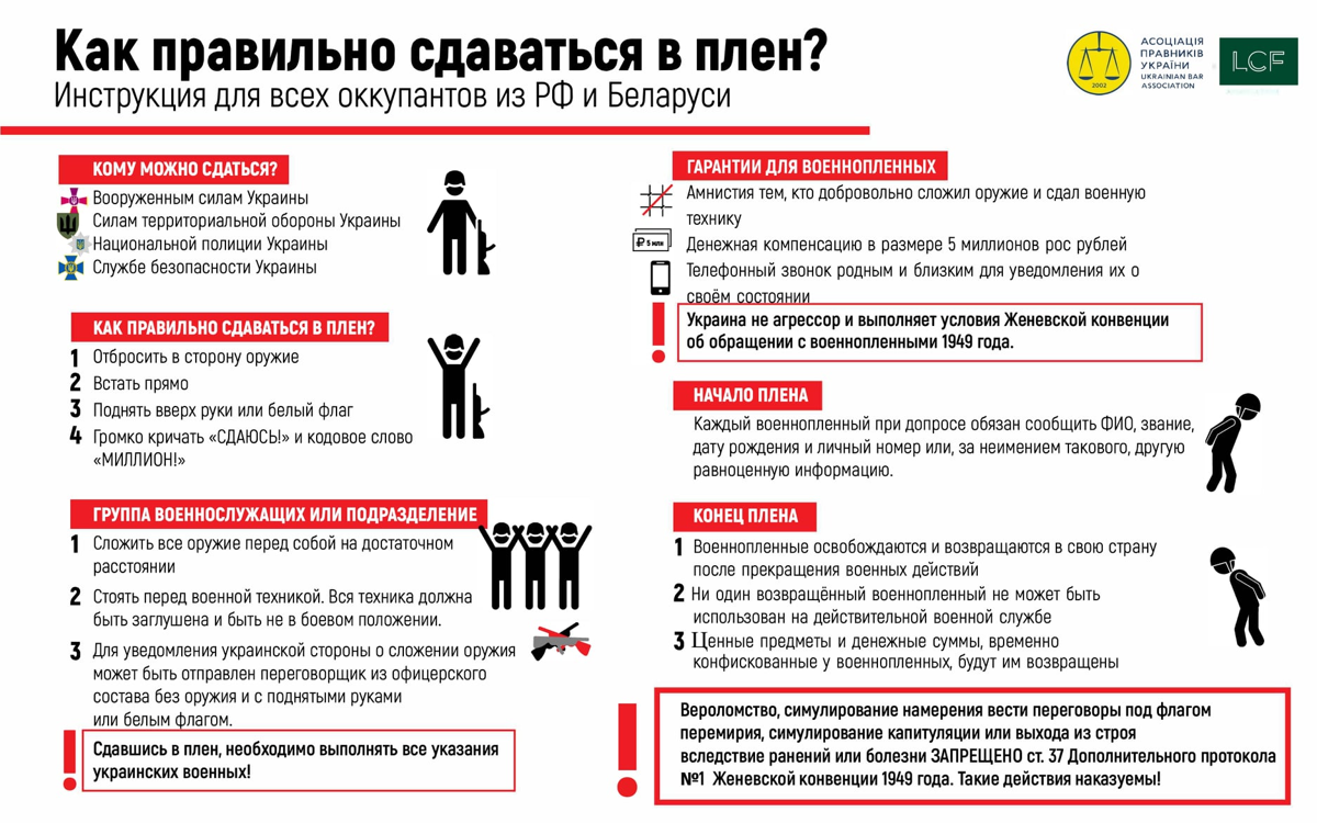 “Ci siamo rivolti anche ai soldati russi. Attraverso un video e volantini gli abbiamo spiegato come arrendersi. I militari russi sono demotivati. Sanno che sono stati mandati a morire. Non vogliono morire e non vogliono combattere. Noi gli spieghiamo cosa fare: armi a terra; mani in alto; in piedi davanti al carro armato o all’equipaggiamento. Ed è fatta. Stiamo diffondendo questa fotografia ovunque e, anche se non abbiamo numeri, sappiamo che grazie a questo avviso molti si sono arresi”.